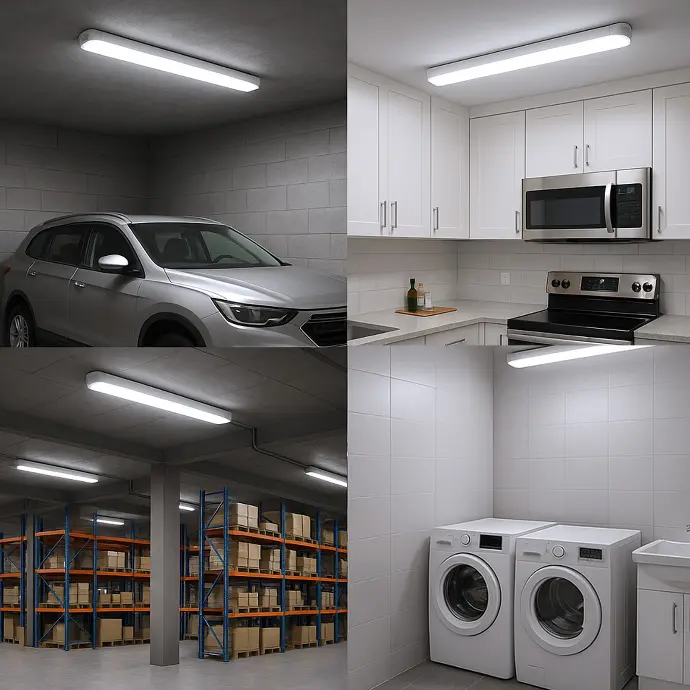 Su diseño enlazable permite conectar varias unidades, optimizando la iluminación en garajes, aparcamientos, almacenes, oficinas y supermercados, donde se requiere iluminación intensa y constante.