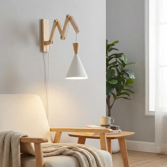 Gracias a su brazo extensible con varios puntos de articulación, permite ajustar fácilmente la profundidad y la orientación de la luz, adaptándose a distintos usos: como lámpara de lectura junto a la cama, iluminación auxiliar en el salón, escritorio o zona de descanso.