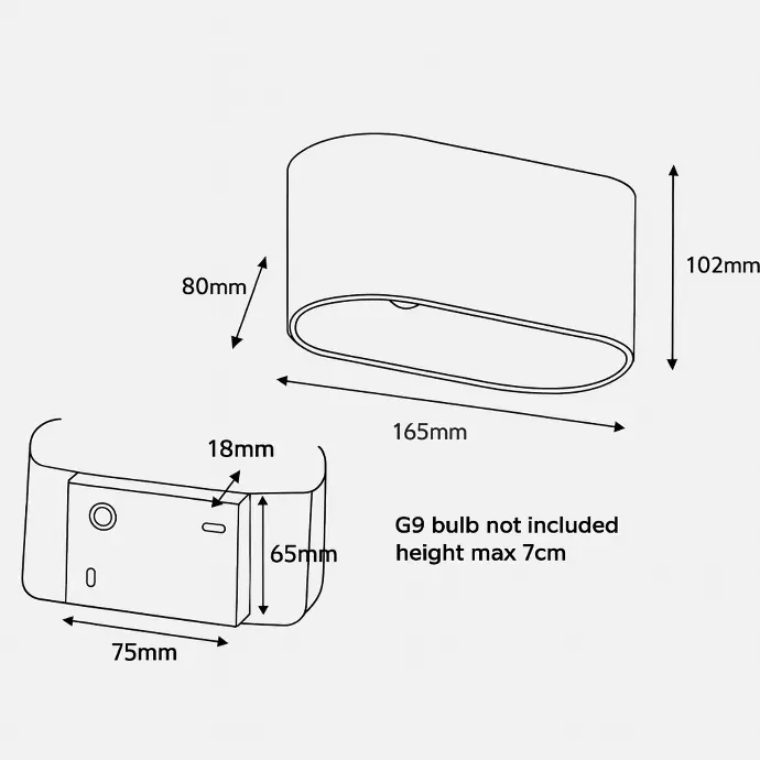 La iluminación fija arriba y abajo crea un efecto de luz ambiental muy decorativo, ideal para realzar paredes, pasillos, dormitorios, salones, escaleras, oficinas u hoteles. Su casquillo G9 permite sustituir la bombilla fácilmente y utilizar LED de hasta 12W (no incluida), ajustando la tonalidad a tus necesidades.